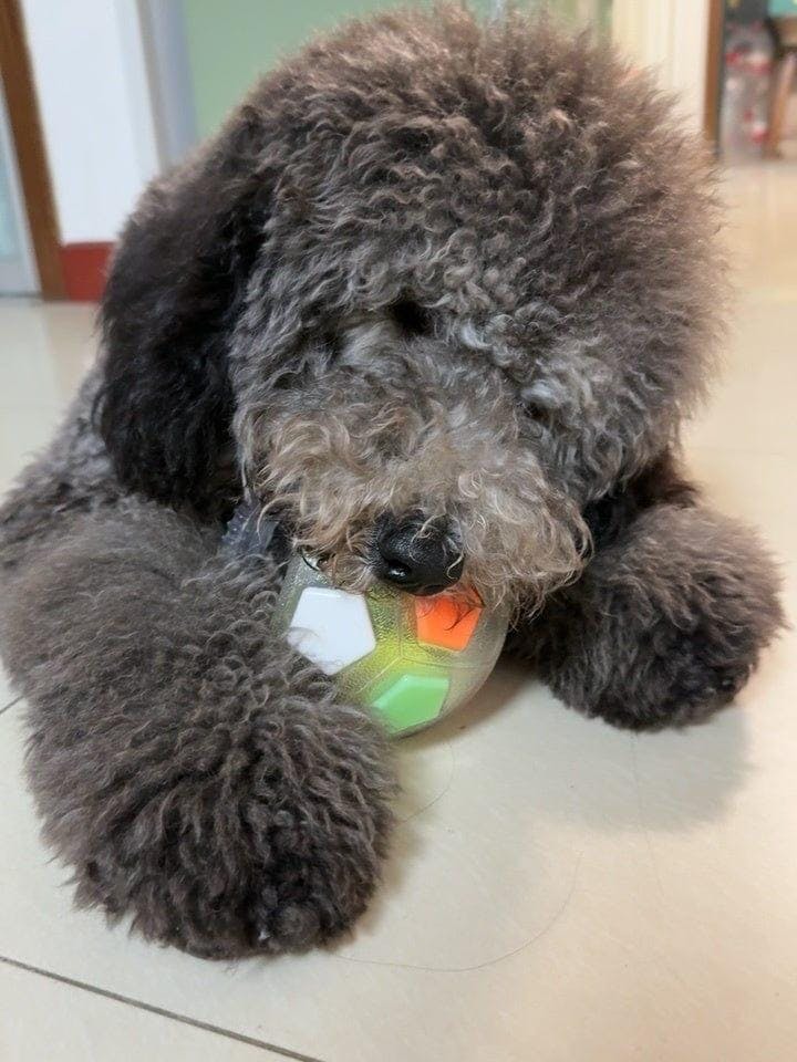 Leo si annoiava facilmente e abbaiava di continuo. Ho comprato ZampaGol™ per provare e da allora è cambiato tutto! La maniglia e il suono lo incuriosiscono sempre, gioca anche da solo e sembra molto più sereno