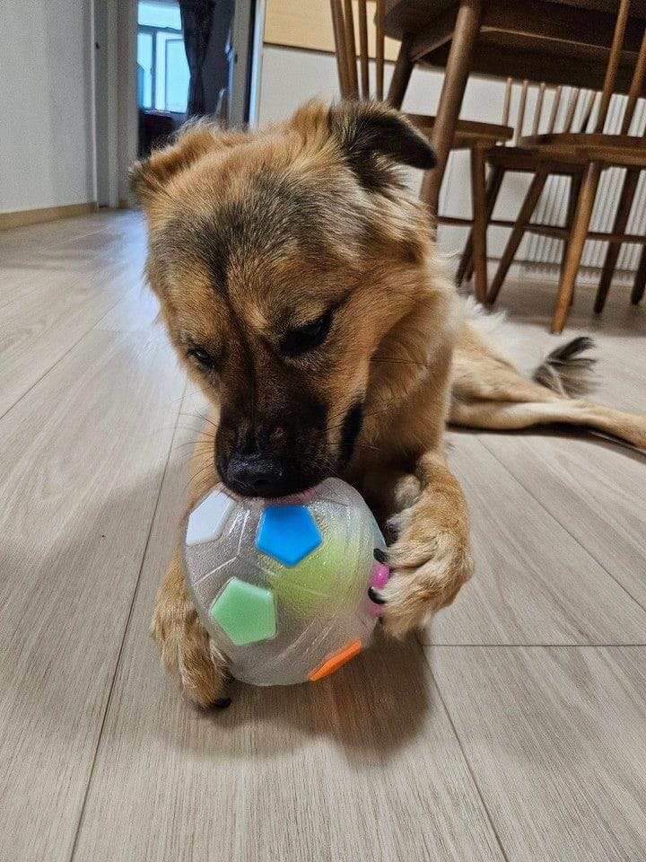 Maya è sempre stata ansiosa e si agitava con ogni rumore. Con questa palla ho notato la differenza dopo pochi giorni: quando si stressa, va a prendere ZampaGol™ da sola e inizia a giocare. È come una terapia per lei.